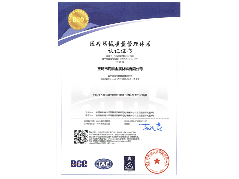 質(zhì)量體系認(rèn)證書